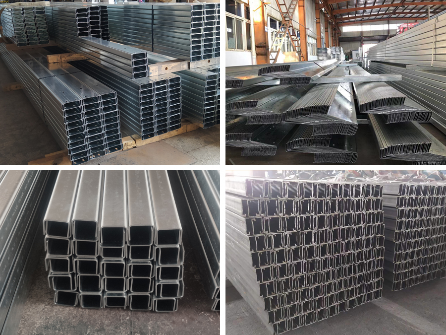 建筑C型钢是由冷弯自动成型机辊压出来,规格,长度,厚度,锌层,材质,孔位等可根据客户需求定制化生产,具有壁厚均匀、截面性能优良,强度高,与传统热轧相比同等强度可节约材料30%.